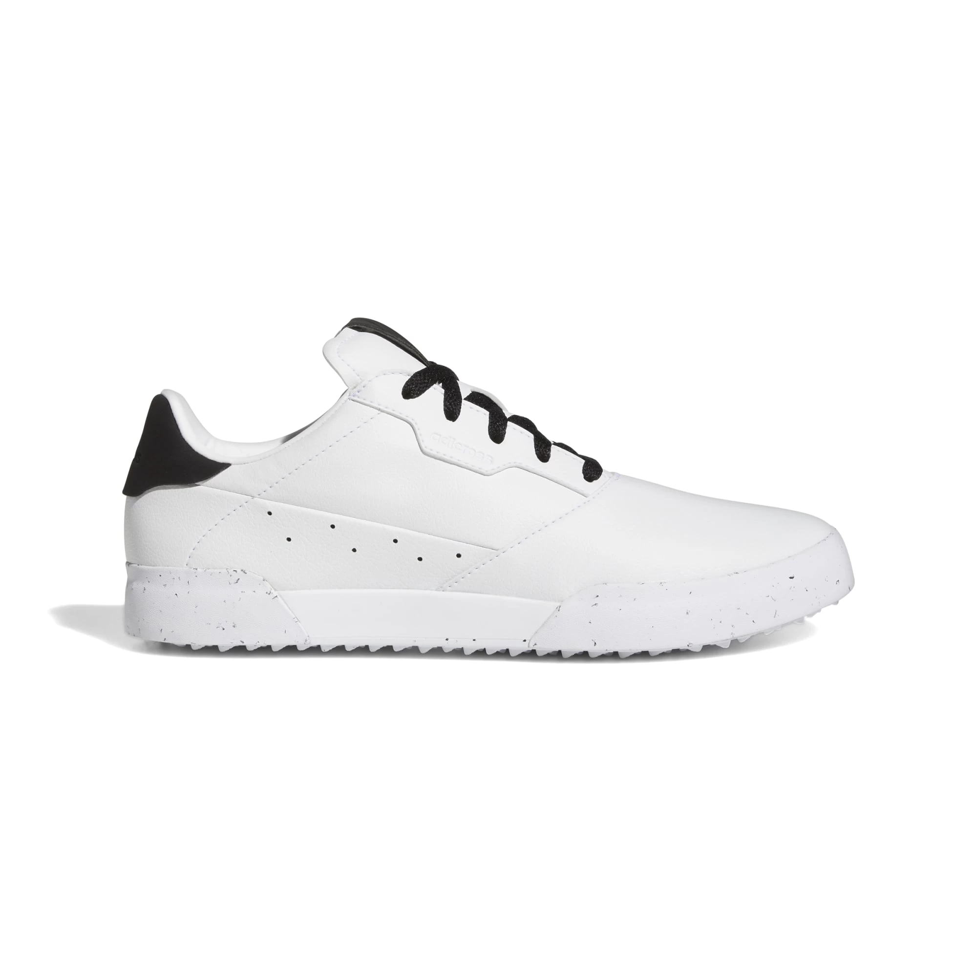 adidas Adicross Retro Golf Shoes – White/Black The adidas Adicross Retro Golf Shoes allow golfers to wear a pair of golf trainers that have a classic throwback style but uses modern technology to create a brilliant golf shoe for both on and off of the golf course.& These golf shoes have been designed to look like a classic pair of court shoes that look stylish but offer brilliant functionality with the enhanced midsole cushioning that provides excellent support so that your feet are still comfortable after a full 18 holes of golf.& As a pair of spikeless golf shoes these trainers use an Adiwear outsole that offers high wear and tear durability which has been paired with a Traxion outsole to deliver a brilliant combination of performance and stability.& adidas has used a water-resistant upper on this golf shoe so that your feet remain dry while playing on a damp fairway. This upper has been made using vegan materials that include at least 25% recycled materials. Features Regular fit Lace closure Water-resistant vegan upper Microfibre lining Slow resilient sockliner Enhanced midsole cushioning Spikeless Adiwear outsole featuring fish-scale Traxion Vegan alternative: At least 25% recycled content