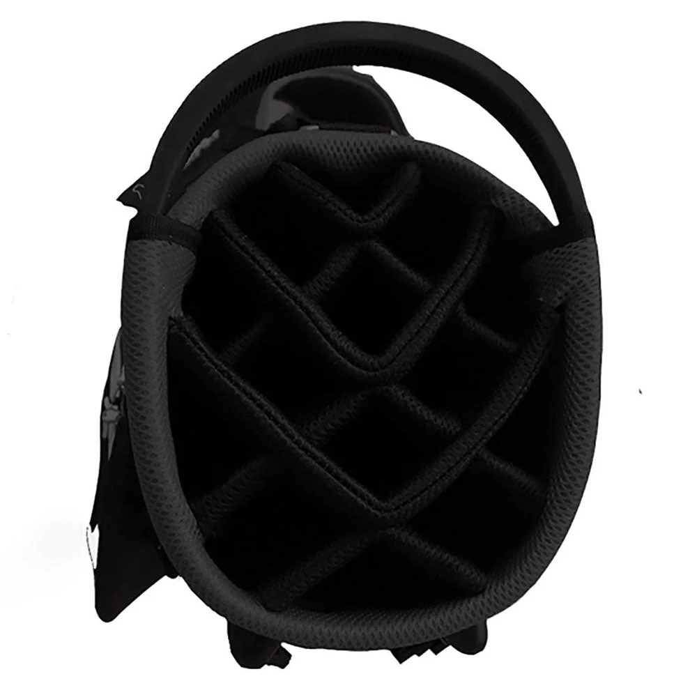 With an 8.5” diameter divider, club organisation is easy, with a club-friendly graphite top. The bag material is robust, standing up to repeated long term use. A fully adjustable shoulder strap and lumbar support minimises stress fatigue, keeping your energy directed at the game.