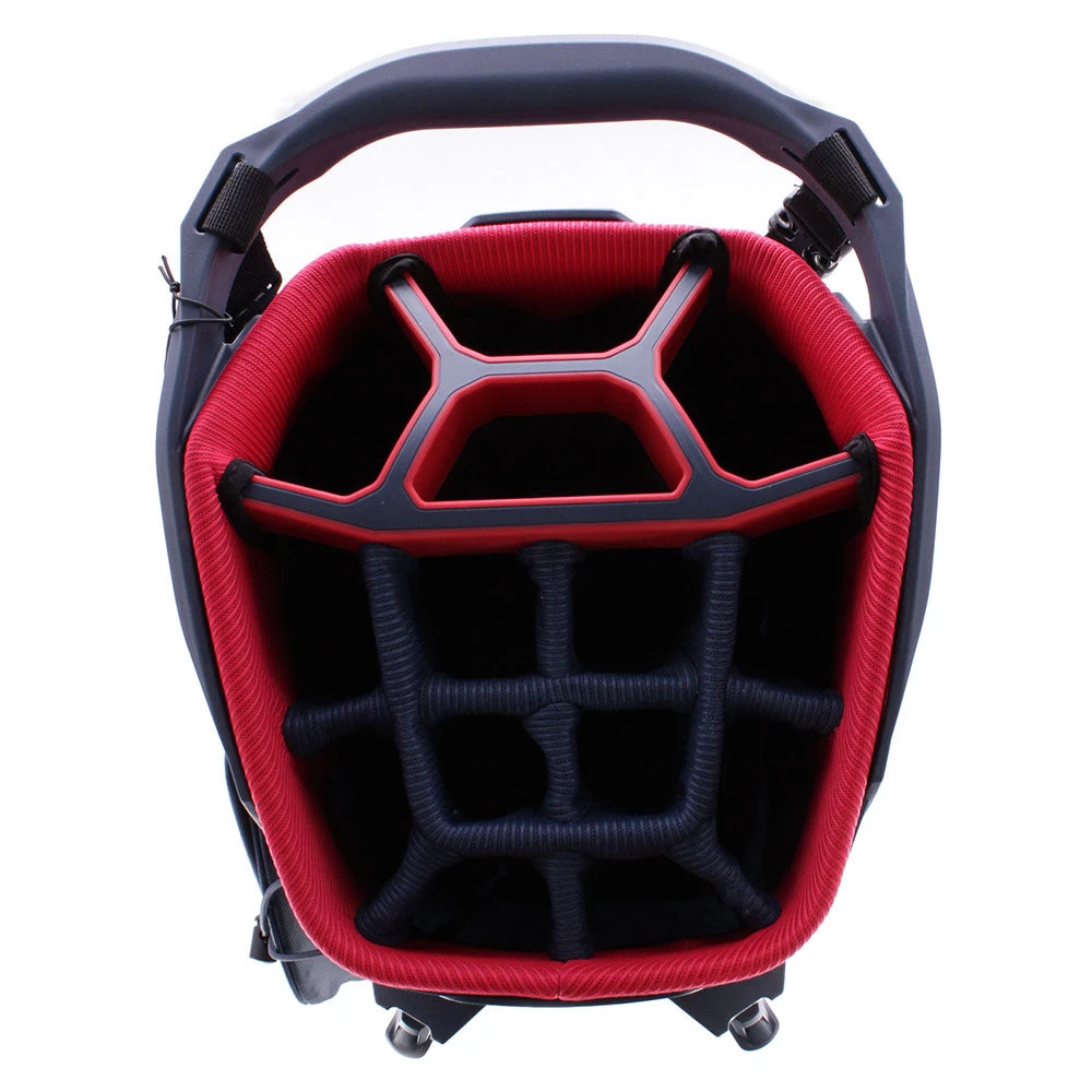 The 14-way divided top features individual full-length dividers for easy and secure access to clubs, while 7 total pockets offer ample storage for valuables, accessories, garments and more. Added features include metal zip pulls, alloy towel ring, GPS/rangefinder pocket, and innovative lowrider top, alongside a rain hood for protection in wet conditions.