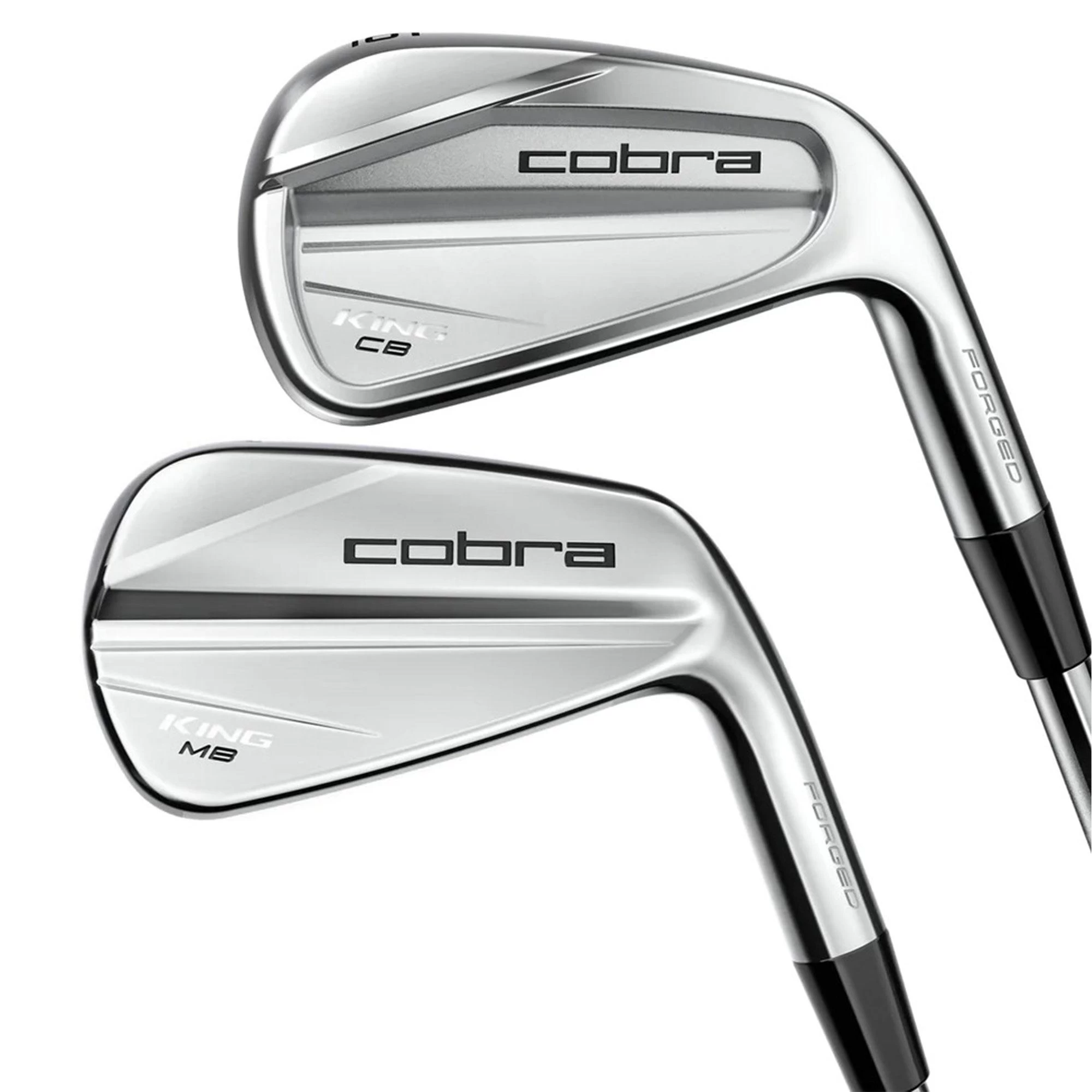 Cobra&King CB/MB Golf Irons – Steel The Cobra King CB/MB Golf Irons are a set of irons designed for better players looking for precision and control. The set includes both cavity back (CB) and muscle back (MB) irons, with the CB irons featuring a cavity back design that provides forgiveness and distance, while the MB irons have a classic muscle back design that provides maximum feel and control.Overall, the Cobra King CB/MB Golf Irons are a high-quality set of irons that are well-suited for experienced golfers who are looking to improve their game with more precision and control. The Cobra King Tec CB/MB Irons come in various set options to fit your gap and style preferences. The combo set features forgiving cavity back long irons (4-6 iron) that transition smoothly into muscle-back short irons (7-PW) for precise shots and improved scoring. Progressive Performance The&King Tec CB/MB combo set prioritizes optimal shot-making in your short irons, while also providing stability and forgiveness in the long irons. This set-up delivers top-notch performance throughout your entire bag. Phenomenal feel & feedback 5-Step 1025 forged carbon steel irons offer exceptional feel and response with every shot. Players Cavity and Muscleback Combo-Set The Cobra King Tec CB/MB irons feature compact head shaping and slender top lines in both cavity back and muscle back designs, promoting versatility and accuracy in your shots. Superior Shot-Making & Control These&Irons provide consistent control over trajectory and shot shape, enabling clinical precision and mastery over your shots. Standard Shaft: KBS $ TAPER Steel Standard Grip: Lamkin Crossline 58 Black