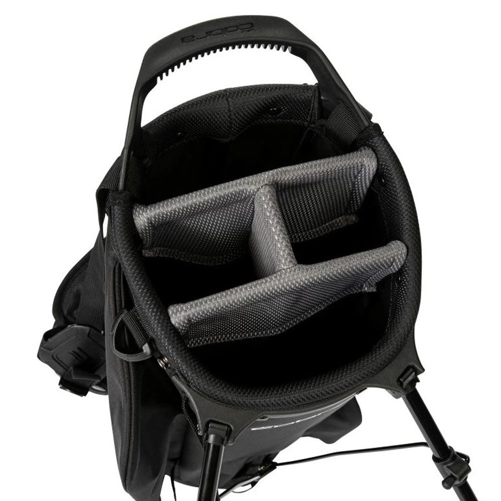 The 9” diameter, 4-way divided top offers plenty of room for club organisation, with 7 total pockets for accessories, valuables, and more. The new stable leg design and easy flex base greatly enhance stability even on the most arduous terrain.