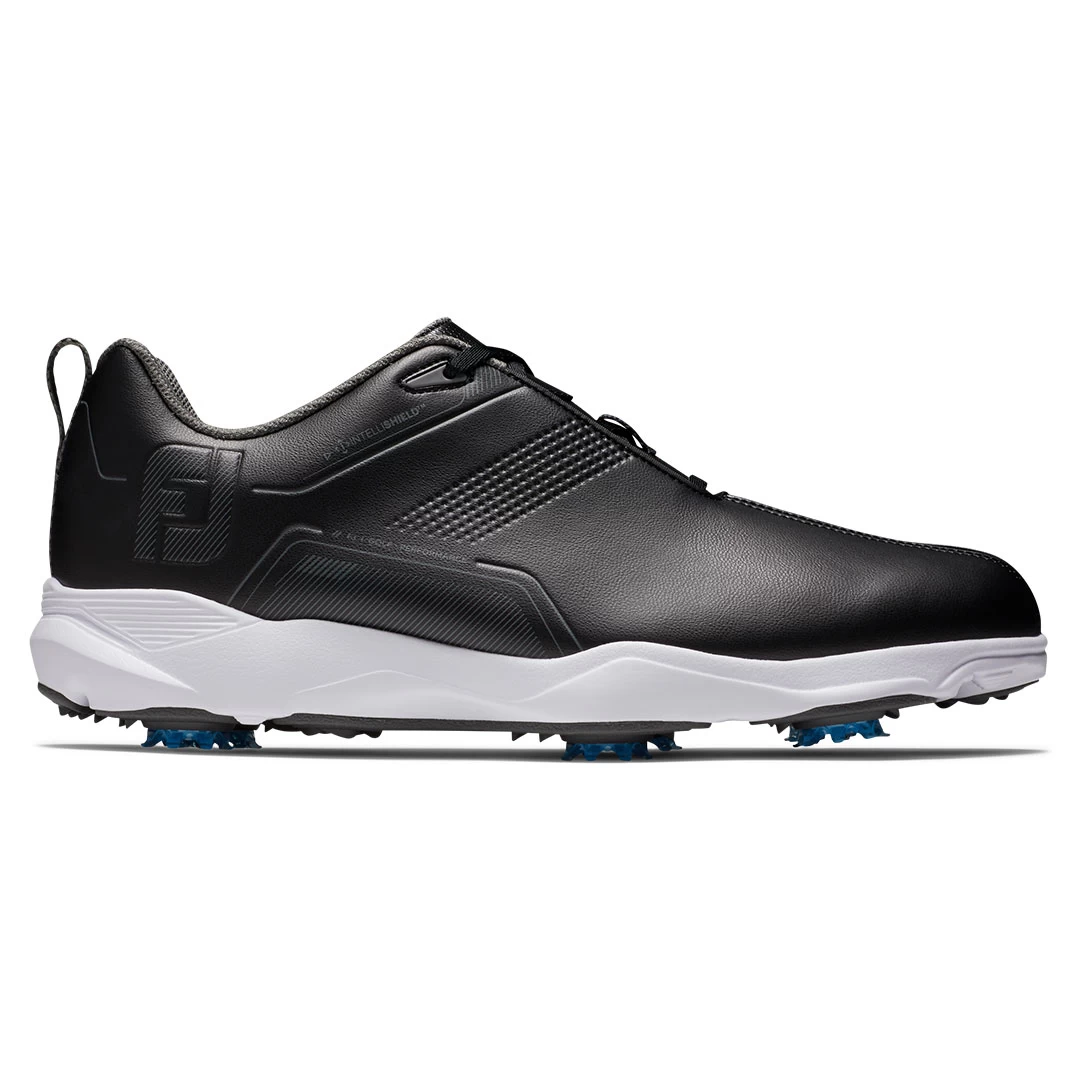 Footjoy eComfort Golf Shoes The FootJoy eComfort golf shoes offers golfers the chance to have a pair of shoes that offer modern sporty stylings, but feature the functionality of a waterproof cleat.& Built on a Laser Sport Last that features a fill rounded athletic toe character, with a standard fit across the forefoot and instep of the wearer, that also has a slightly narrow heel. The Last also offers extra depth to make room for a thicker footbed so that players can experience enhanced cushioning. This cushioning is made even better with the exceptional crossover comfort that is created by using the ultra-cushioned FineTunedFoam Fitbed.& The eComfort also features Pulsar LP by SoftSpikes (Fast Twist 3.0 Cleats) that delivers maximum comfort and performance by using the 16 components design that works to create workability and react to every angle of force created by the golfer. These shoes also come with a 1 year waterproof warranty thanks to the performance synthetic upper design that has been used that provides a soft and easy to clean upper. Features and Benefits Fully waterproof Synthetic easy-care upper design Pulsar LP by SoftSpikes® – Fast Twist 3.0 Cleats Laser Sport Last Full rounded athletic toe character, standard fit across forefoot and instep, with a slightly narrow heel. Extra-depth last to accommodate a thicker footbed for enhanced cushioning. &