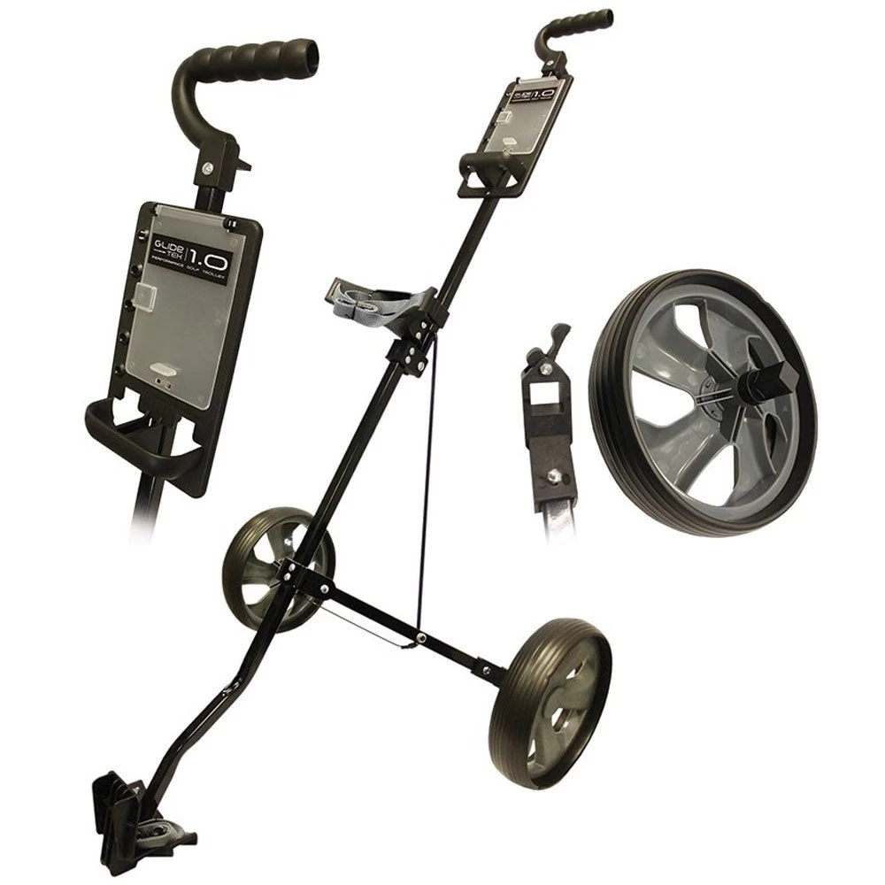 The 2-wheel design easily handles various types of terrain, with secure straps for your golf bag to ensure smooth operation in combination with an ergonomic handle for further comfort.