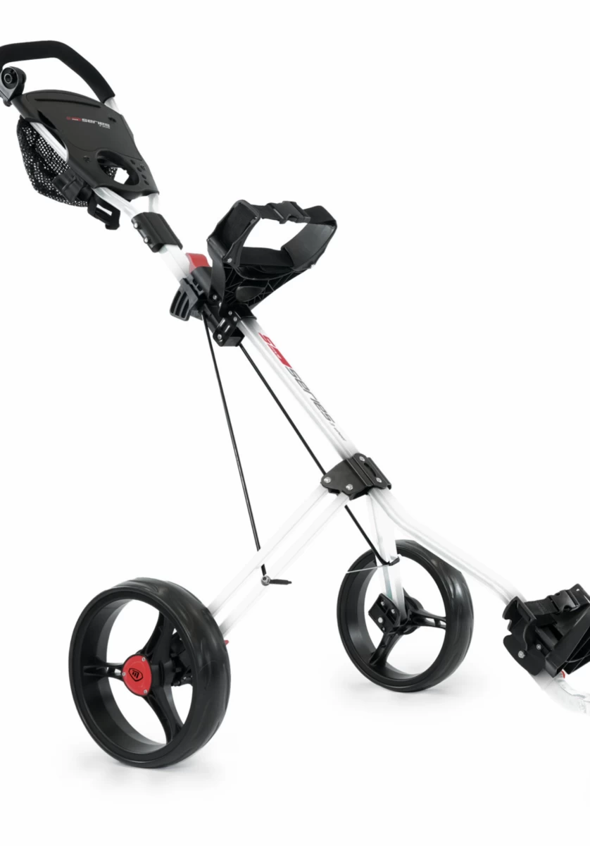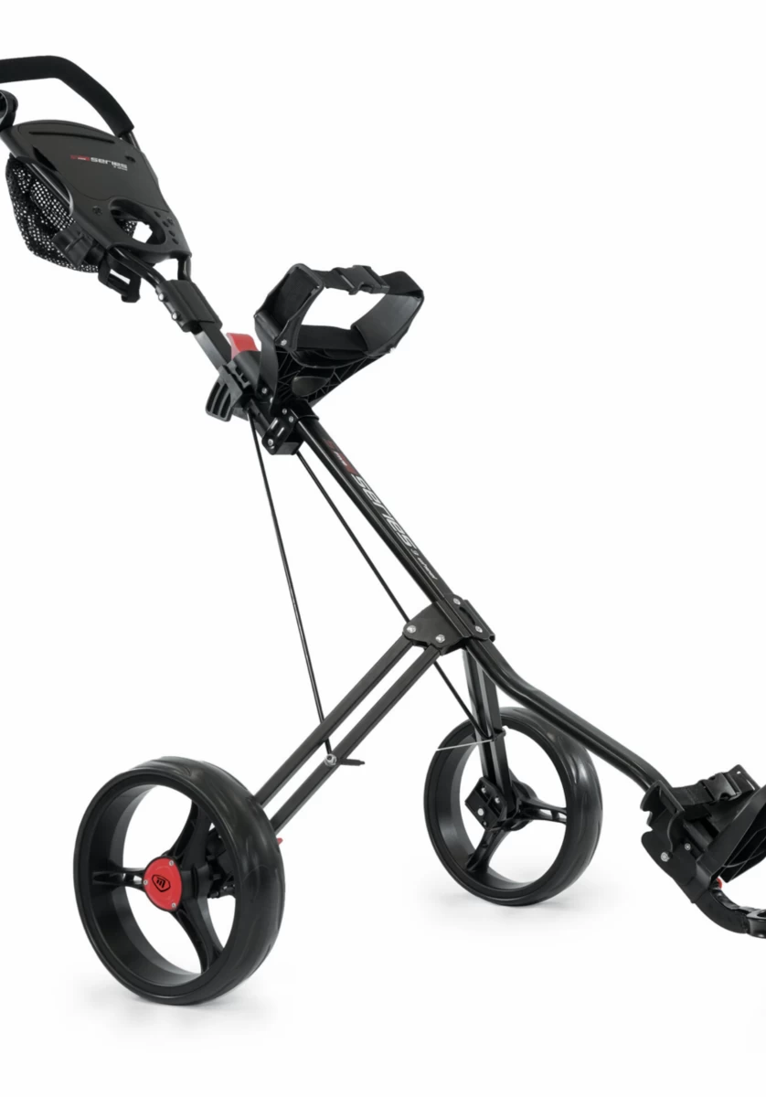 It easily folds away to take up minimal space for the journey to and from the course with easier manoeuvrability.