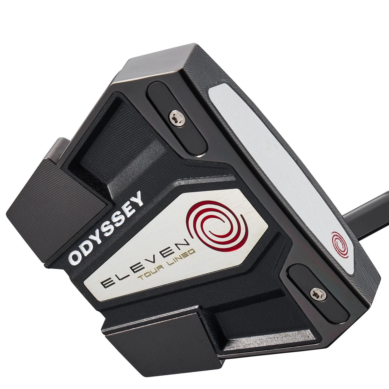 Odyssey Eleven Tour Lined S Golf Putter The Odyssey Eleven Tour Lined S Golf Putter is a toe hang mallet which is best suited for golfers who play with strokes that feature moderate face rotation and arc.& By using a multi-material design, Odyssey has been able to move the Center of Gravity forward nearly a ¼ of an inch compared to other mallets, while increasing the inertia substantially. This movement of the CG has led to a club that now has improved performance, spin control, control of speed and consistent speed on putts even on off-center hits. As Well as a much tighter downrange dispersion for putts that stay online. The new shape design of the Eleven has allowed for advancements to be made when looking at the forgiveness and alignment compared to the major winning Ten Model . This new design has been chosen as it helps players properly frame the ball with right and alignment as they prepare to sink their shot, while also including high MOI for even better accuracy.& The Eleven S also features the most popular putter insert of all time, Odyssey’s White Hot insert. This insert is back with its original formulation and creating the same feel, sound and performance as before. To go along with this, a super lightweight TPU sole insert has been used to further improve the sound and feel, while also adding very little weight to the center of the putter’s head. Odyssey has decided to use their newest generation of Stroke Lab shaft, which features even better performance. This has been achieved by shortening the steel section, which allowed for 7 grams of weight to be saved. Then the shaft was made stiffer and more stable to allow for even more consistency on strokes.& While the shape of the club has been designed to create additional forgiveness, the crowned design also includes the tour preferred single alignment line.& The Odyssey Eleven has been designed to completely reimagine what performance in a mallet can be. By including the legendary White Hot insert, still recognised as the number one insert on the Tour, a unique head shape, and the Stoke Lab shaft Odyssey has been able to create a mallet that will get the best out of anyone’s game.& Features & Technologies New Eleven Shape The Eleven shape advances the forgiveness and alignment properties of our major winning Ten model. It’s designed to help you properly frame the ball with the right alignment at address, along with high MOI for better accuracy. Red Stroke Lab Shaft The newest generation of our proven multi-material Stroke Lab shaft features even better performance. You’ve probably seen the world’s best players use it on TV, especially on Sunday afternoons! By shortening the steel section, we reduced the weight by seven grams. We also made it stiffer and more stable for even more consistency in your stroke…and your performance. Forward CG & High Inertia Using a multi-material design, we’ve moved the CG forward nearly ¼ of an inch over other leading mallets while increasing inertia substantially. This creates improved performance, speed control, spin control, speed consistency on off-center hits, and a much tighter downrange dispersion for putts that stay on line. Super lightweight TPU Sole Insert This insert helps us improve the sound and feel, while adding very little weight to the center of the putter head. Crowned Design The crowned design allows us to finish the shape and provides a blank canvas for various alignment aides.Plain, lined, or Triple Track versions are available. White Hot Insert The most popular putter insertof all time is back with the original formulation, feel, sound, and performance.