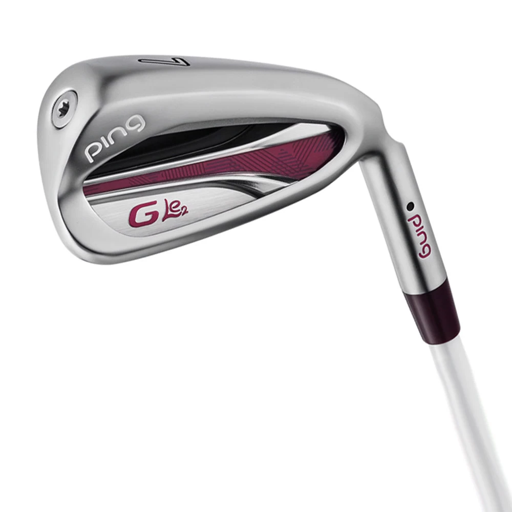 Ping G Le 2 Ladies Irons Lighter, overall with smarter club weighting to allow Lady Golfers, faster swing speeds plus a more comforting feel and control. A 10% higher MOI, utilises the COR-Eye Technology with a deep top-rail undercut, designed to increase face flex, which produces longer distance and maximum heights. 10% More Forgiving Precise and forgiving with a lighter overall club weight, G Le2 irons utilize COR-Eye Technology with a deep top-rail undercut to increase face flexing for more ball speed and higher max height. A tungsten toe weight helps increase MOI by 10% for greater forgiveness and a co-molded cavity badge ensures a pleasing feel and sound. Available 6-9, PW, UW, SW. More Fitting Choices A thinner, hotter CarTec Custom 455 face and lighter club weight generate faster ball speeds while a lower, deeper CG helps increase the MOI to launch the ball high with greater forgiveness. The addition of a 34? 7 hybrid expands the fitting options for women who prefer the technology of a hybrid in place of an iron. Softer crown turbulators help frame the ball at address and aid in alignment. Lighter, Faster, More Forgiving The next generation of golf’s highest-performing women’s driver maximizes forgiveness and distance through a higher MOI, faster face and lighter overall club weight. Its lighter titanium head features a rounder, more aerodynamic shape to promote faster clubhead speeds. A thin, forged T9S+ face is optimized for women’s swing speeds to increase flexing for more ball velocity and improved launch conditions. Lighter Grip and Shafts A lighter, super-soft Golf Pride Tour Velvet 360 grip in an attractive garnet color is standard with G Le2. PING’s proprietary ULT240 Lite and Ultra Lite premium graphite shafts help bring down overall club weight while helping you generate more clubhead speed and ball velocity with no greater effort.