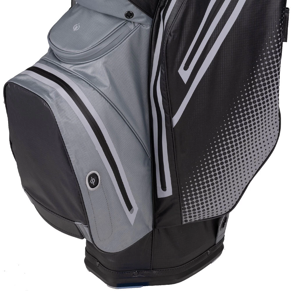 The pockets are forward-facing and accessible while the bag is in cart and the cart bumpers are added for durability. The bag bottom is moulded to fit over the lower bag rest of the Speed Cart V1R, Pathfinder PX3 and PX4, minimising side-to-side movement. It will also fit onto other golf trolleys.
