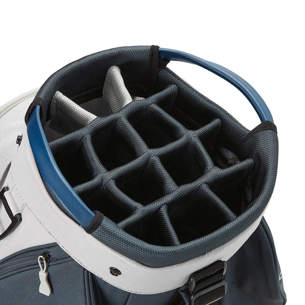 The cart strap pass through ensures a snug fit while navigating the course, with an optimised top and base that ensure a better fit. The ergonomic grab handles and single shoulder strap make this bag easy to hoist and move, with an overall lightweight design.
