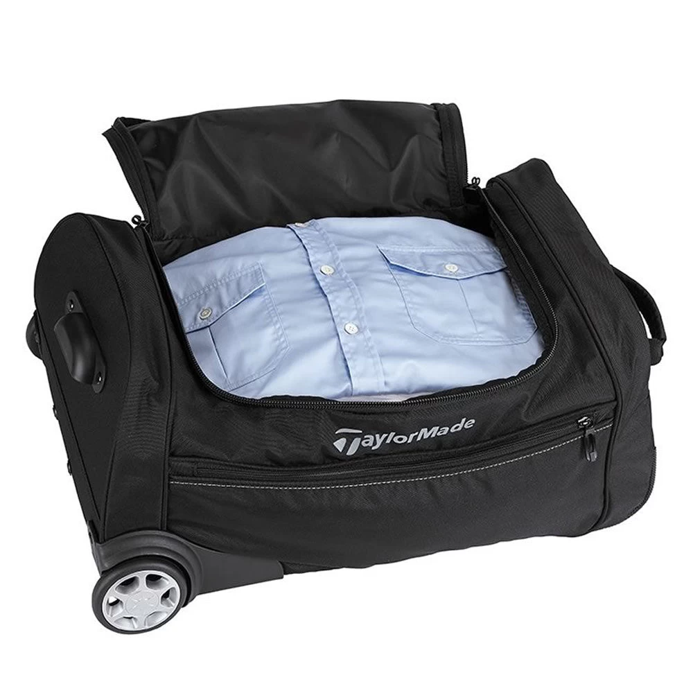 Travel in style with the TaylorMade Performance Rolling Carry On, designed to be the ultimate way to transport your golfing essentials on your travels. The bag has a large U-shaped opening into the main compartment for an easy access, there is also an exterior pocket on the front. The bag is constructed with durable fabric and base, with multiple handles for easy lifting it also includes a telescopic handle allowing it to roll with ease along with you.