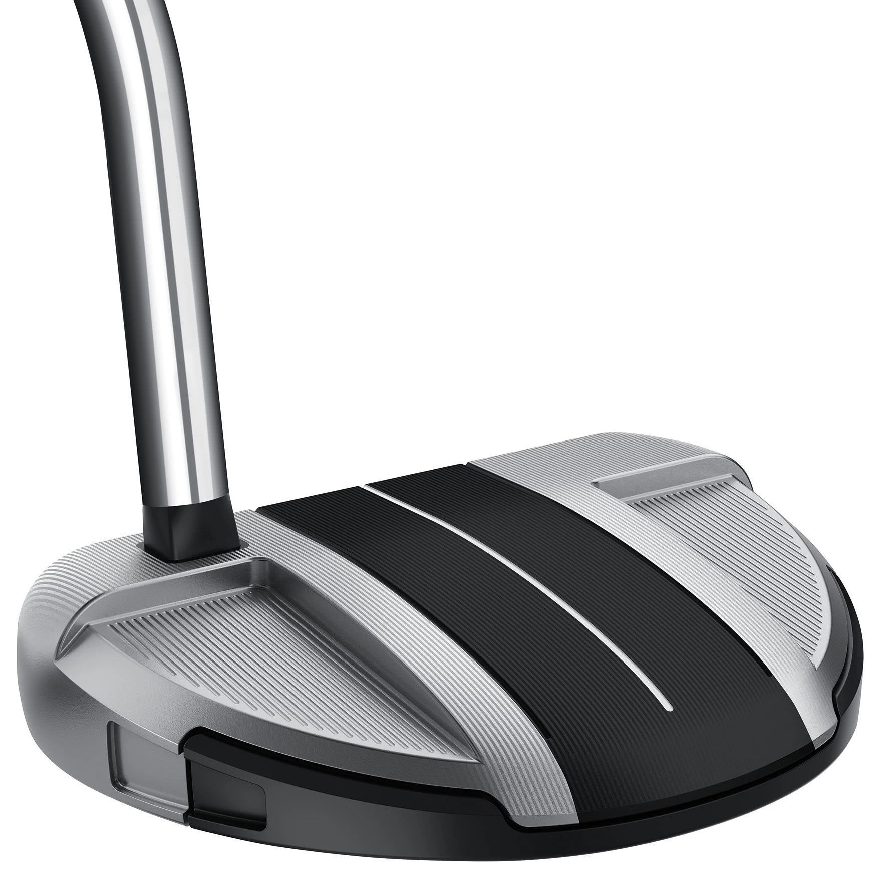 Spider GT Rollback Silver Black Single Bend Golf Putter The most striking feature of the Spider GT is the lightweight 145g top plate made from 6061 aluminium, which eliminates excess weight in the middle of the putter and also features a short sightline to aid golfers with alignment at the approach.& Working in tandem with the new ultralight top plate is the first of its kind open frame multi-material design features two 90g steel side weights. These weights push 82% of the putter’s total weight to the perimeter to create extreme stability on off-centre strikes. Only 18% of the weight is centered in the middle to stabilize deflection on off-center strikes for maximum forgiveness. Spider GT’s contemporary design has the Pure Roll² co-moulded insert for improved forward roll and ball speed consistency across the face. Pure Roll² is a firmer insert, manufactured of black TPU urethane with silver aluminium beams at a 45° angle designed to improve topspin across the face The four anodized finishes for Spider GT are silver, black, red and white for the Spider GT women’s model, which also features a three-dot sightline for alignment. This putter is available with a single bend hosel. This option is best for players who have a straight-back, straight-through putting stroke. Features and Benefits The Modern Shape of Stability Spider GT sets a new standard in terms of performance and contemporary construction. The modern wing design has sharp angular features and extreme perimeter weighting for optimal forgiveness.& Top Plate With Short Sightline Made from lightweight 6061 Aluminum, the 145g top plate eliminates excess weight in the middle of the putter. Steel Side Weight Construction Steel side weights (80g per weight for a total of 160g) create a heavy frame for stability and distance control. Only 18% of the weight is centered in the middle to stabilize deflection on off-center strikes for maximum forgiveness. Pureroll2 Insert For Improved Topspin The new firmer co-molded insert, manufactured of black TPU urethane with silver aluminum beams at a 45° angle designed to improve topspin across the face. Fluted Feel™ A newly engineered stability putter shaft with a softer section located 5” from the tip, intently designed to enhance feel, increase stability and improve dispersion. & &